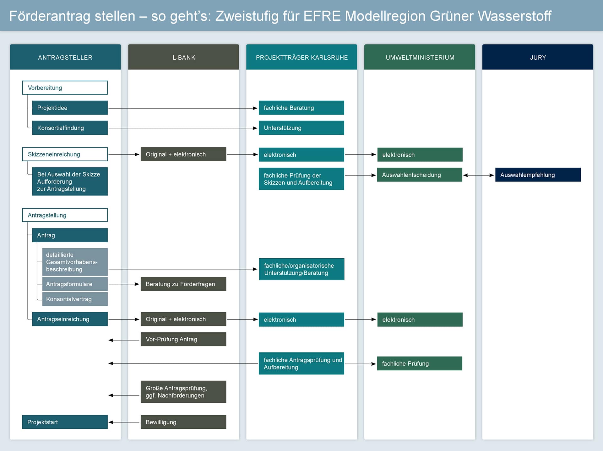 • Die Auswahl der erfolgreichen Skizzen des Demonstrationsvorhabens und des Begleitforschungsprojekts erfolgt durch eine Jury gemeinsam mit dem Ministerium für Umwelt, Klima und Energiewirtschaft.