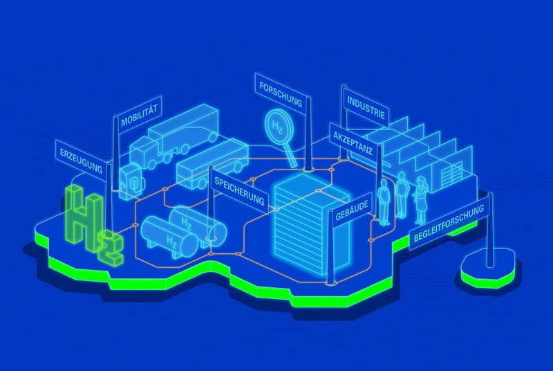 Daneben soll „grüner“ Wasserstoff zur Energieerzeugung mit Brennstoffzellen und als Rohstoff in wesentlichen Energieverbrauchssektoren – von der Mobilität über die industrielle Nutzung bis hin zur Wärme- und Stromerzeugung für Gebäude – als treibhausgasfreier Energieträger genutzt werden.