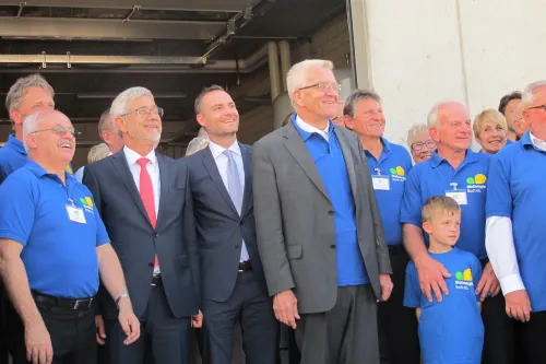 Nach der Begrüßung durch den Bürgermeister der Stadt Heubach, Frederick Brütting, gefolgt von Grußworten von Winfried Kretschmann, von Klaus Pavel, Landrat des Ostalbkreises sowie von Dr. Günter Mezger, Vorstand BioEnergie Buch eG, trug sich der Ministerpräsident in das Goldene Buch der Stadt Heubach ein.
