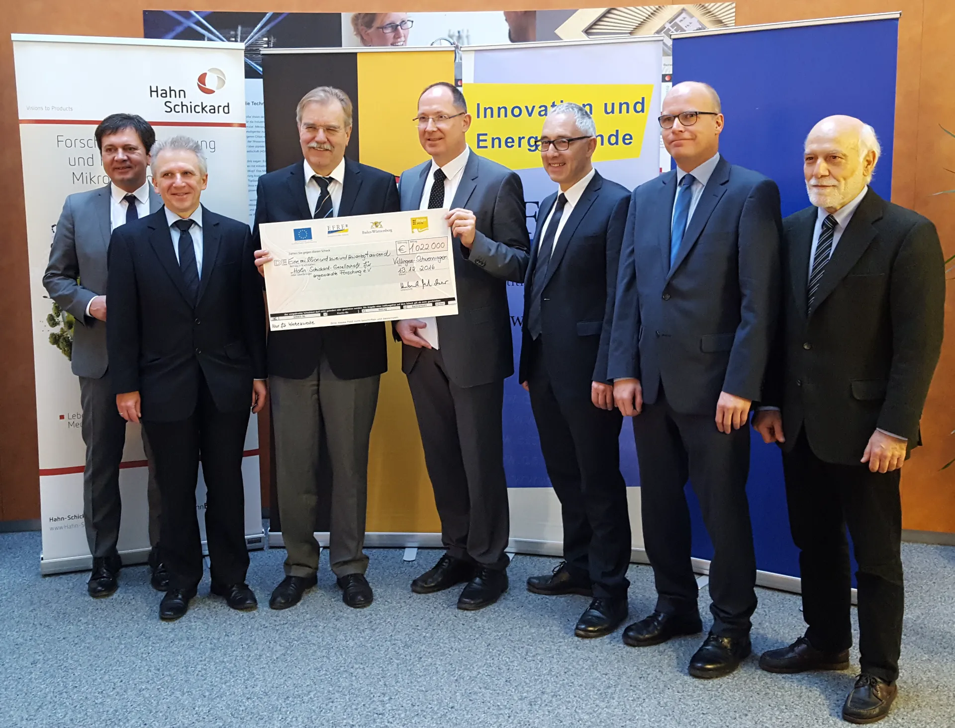 „Durch die fachgerechte Unterstützung bei der Fertigung und Zulassung neuer medizintechnischer Produkte können rund hundert überwiegend mittelständische Unternehmen des Medizintechnik-Clusters in der Region Schwarzwald-Baar-Heuberg wesentlich schneller und risikofreier neue technische Lösungen in erfolgreiche Produkte umsetzen und ihre Investitionskosten in der Fertigung stark reduzieren“, so Ministerialdirektor Hubert Wicker bei der Übergabe des Zuwendungsbescheids am 13.Dezember 2016 an Institutsleiter Professor Dr. Roland Zengerle in Villingen-Schwenningen.